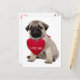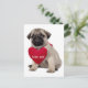 Brighten someone's day with handwritten note! This fun canine postcard features an image of a Pug puppy dog wearing a red love heart highlighted against a creamy white background.
