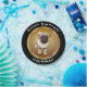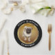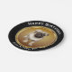 Pug Puppy on Faux Gold Happy Birthday with Name Paper Plate. Personalize you paper plate by typing your name in the text box. "Happy Birthday" can also be changed for other occasions.