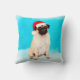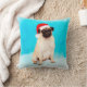 Pug Sitting in snow with Christmas Santa Hat Throw Pillow