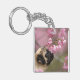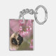 Pug Smelling Cherry Blossoms Keychain
