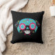 Pug Sugar Skull Turquoise Front Multicolor Pattern Throw Pillow