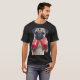 My 11 yo wore adult XL (5’7” 165#). The 8yo is small framed. She wore adult small and tied it in the back. Grandma wore adult large with long sleeve shirt underneath. Tall girl adult medium. Dark haired male adult large. Good quality dark Heather gray, Gildan brand shirt. -it was next up from basic choice and cost about $20 per shirt. Not too thick or thin. Washed and dried well, no major shrinkage. Not see-through. Can wear a bra under it fine. Screen print is just as shown and well done, front and back.