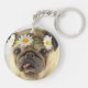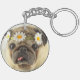 Pug with Daisy Crown Keychain