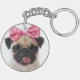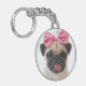 Pug with Pink Bow Keychain