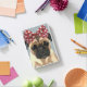I was super excited when I got my cover in. It is attached by a magnet across the edge. I don’t think it will be very protective but it is very cute. I’m going to keep my iPad in a sleeve and use this face cover while I have it out. It folds to create a tilt for better viewing and to keep the iPad at a slight angle for typing. The colors are bright and it is fun. I’ve really enjoyed it. The personalization looks like amazing. It is the same color as the picture and is the same brightness. Well done! Very nice.