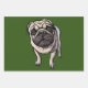 3 sheets of Pug wrapping paper, with different sizes of the Pug
