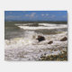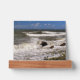 As the waves roll in toward a rocky beach on Puget Sound, an ocean wave crashes into a rock and sends spray flying into the air. Sea foam washes over the rocks on the shore. Small clouds float in the blue sky overhead. Bring this seascape photography from the Pacific Northwest to your home with this picture ledge.