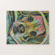 This puzzle was designed by taking a photograph that my cousin Andy took of his puggle Emma and converting the photo to a black and white print. The color and style then restored by using colored pencils.