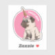 Image By Afishka | Shutterstock. Image ID: 1170091624 | Adorable beige puppy Pug in a ice cream party cap on a pink background. Pugicorn - lettering quote.