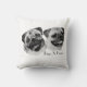 Two Pugs Black and White sketch on square pillow. Designed by Snail Mail Forever. www.snailmailforever.com