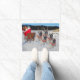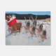 A picture of multiple pugs wearing reindeer antlers and pulling a Christmas sleigh with presents inside.