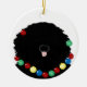 Lightweight, smooth, pure white ornament with nice sheen. Perfect size to be seen from across the room ... and to attract closer inspection! Price was great for ordering enough for the whole family! Clear, bold black design just as requested. Matches the order exactly. Just so nice!