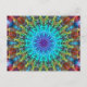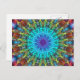 Colorful kaleidoscope with a bright teal color in the centre. Yellow waves flowing out over orange and aqua colors ending up in red and purple.