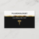Lung Doctor Pulmonologist business cards with powerful but simple black and white two side design that includes a simulated gold tone divider line printed on the front, a medical symbol, and text layout you can customize and personalize. Best business cards for a therapist involved in respiratory diseases, Pulmonology.