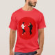 My 11 yo wore adult XL (5’7” 165#). The 8yo is small framed. She wore adult small and tied it in the back. Grandma wore adult large with long sleeve shirt underneath. Tall girl adult medium. Dark haired male adult large. Good quality dark Heather gray, Gildan brand shirt. -it was next up from basic choice and cost about $20 per shirt. Not too thick or thin. Washed and dried well, no major shrinkage. Not see-through. Can wear a bra under it fine. Screen print is just as shown and well done, front and back.
