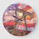 Pumpjack silhouette pastel drawing American Flag Large Clock