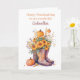 Celebrate Thanksgiving with our charming "Happy Thanksgiving" Greeting Card for Godmother featuring a delightful illustration of cowboy boots adorned with seasonal flowers and nestled among pumpkins. This card captures the spirit of gratitude and warmth, making it the perfect way to express your love and appreciation for your godmother on this special day. Send her your heartfelt wishes and let her know she's the pumpkin spice to your life!