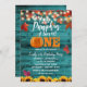 Pumpkin Autumn Leaves Teal Sunflower 1st Birthday Invitation