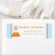 Pumpkin baby shower return address labels with cute baby boy and pumpkin on a baby blue and brown background. These pumpkin return address labels are easily customized with your text.