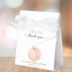 Cute gender-neutral baby shower favor box featuring "thank you" in simple grey typography and a stylish script with swashes, and an orange pumpkin watercolor.