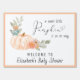 Welcome guests to your baby shower with this cute gender-neutral outdoor yard sign that features "A Sweet Little Pumpkin Is On Its Way" in a mixture of modern typography and a stylish script with a heart swash and a watercolor arrangement of a pastel orange pumpkin, florals and greenery. You can specify the gender of the baby if desired (e.g., "is on her way").