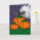 This whimsically spooky card features three pumpkins ready to carve in the grass with a bat ready to take flight on top of the biggest one, set against a midnight sky complete with full moon. Inside reads: "Wishing you a Halloween filled with magic, mystery, and moonlight." A perfect way to share autumn vibes and spooky cheer with friends or family.