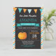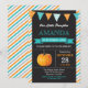 Pumpkin Birthday Invitation for Boy. Little Pumpkin Fall Birthday Invite. 1st First Birthday. Orange and aqua turquoise stripes, chalkboard background. For further customization, please click the "Customize it" button and use our design tool to modify this template.