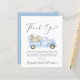 Cute budget-friendly thank you card for your baby boy shower featuring "Thank You" in a stylish script with a heart swash and a watercolor of a blue vintage truck loaded with pumpkins. Personalize your thank you message in simple modern typography and add your names in a signature-like script. This budget semi-gloss paper is similar in weight to photo paper. A traditional card stock version is also available in the collection (message us for the link).