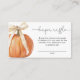 Pumpkin Bow Diaper Raffle Card - A charming and customizable diaper raffle card featuring an orange pumpkin with delicate white bow. Perfect for a fall or pumpkin-themed baby shower, this card adds a unique and festive touch to your celebration while encouraging guests to participate in the diaper raffle.