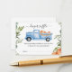 Gorgeous greenery with pumpkins invitation featuring a blue truck filled with pumpkins.