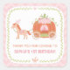 Thank you decorative stickers for your party favors. It features a horse and a pumpkin carriage which is decorated with lots of flowers and floral elements. An elegant decorative floral wreath for border. Pink chevron zigzag pattern for background. Colour palette of orange, pink and green. Great for parties held in the autumn fall season with a fairy tale touch! Personalize easily with your party message.