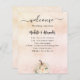 A rose gold, blush pink gradient background. Decorated with a cream colored pumpkin and flowers. Personalize and add your names and the timeline/program.