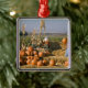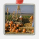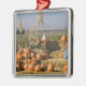 Pumpkin display with hay bales and scarecrows metal ornament