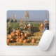 Pumpkin display with hay bales and scarecrows mouse pad