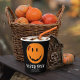 A pumpkin face dressed up for Halloween with a creepy pumpkin smile and stitched scar on the forehead in this kid-friendly Halloween paper cup. Optional text reads 'Wicked Brew, one little sip wont kill you'. Search ID224 to see other products with this design.