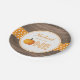 Pumpkin Fall First Birthday Party Paper Plates. Rustic Wood Chalkboard Background.