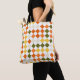 This image displays a colorful, repeating diamond pattern with alternating colors—deep purple, magenta, orange, yellow, and olive green—set against a white background. The diamonds are arranged in a diagonal, grid-like formation, creating a striking visual reminiscent of classic harlequin or vintage textile designs
