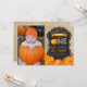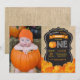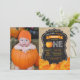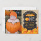 Pumpkin First Birthday Invitation with custom photo, orange and burlap background. For further customization, please click the "Customize it" button and use our design tool to modify this template.