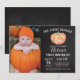 Pumpkin First Birthday Invitation with Chalkboard Background custom photo. Pink. Boy or Girl Bday Party Invite. 1st 2nd 3rd 4th 5th 6th 7th 8th 9th 10th, Any Ages. For further customization, please click the "Customize it" button and use our design tool to modify this template.