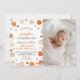 Celebrate your little one’s special day with this pumpkin first birthday photo invitation. Featuring watercolor pumpkins, rustic fall details, and space to add your child’s picture, this autumn design is perfect for a little pumpkin birthday party. Personalize with name, date, and event details to create a unique keepsake invitation your guests will love.