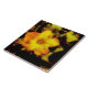 The shapely golden yellow flower in the original photograph by ZoeSPEAK on this 6” Ceramic Tile is a bloom on a pumpkin vine, started from seeds. It makes a cheerful statement among its green leaves touched by sunlight. We shall see if any pumpkins appear.