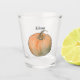A watercolor and ink drawing of a pumpkin adorns this customizable shot glass!
