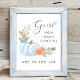 Cute game sign for your baby boy shower with "Guess How Many Candies Are In The Jar" written in a mix of simple soft grey typography and a stylish script with a heart swash and a watercolor of a pastel blue pumpkin, florals and greenery. Place a jar or bottle filled with candies underneath and ask your guests to guess how many candies are in the jar. The winner will be the guest who gets closest without going over. Matching guess cards are available in our Blue Pumpkin Floral Watercolor Baby Boy Shower Collection.