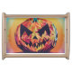 Great for Halloween parties, a serving tray with a scary pumpkin.