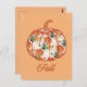 Postcard in a design! featuring a pumpkin outline filled with a rich floral chrysanthemum pattern in warm orange and green hues, it captures the essence of autumn.