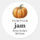 Editable homemade pumpkin jam label featuring a vintage style pumpkin illustration. Make your own canning labels for your favourite homemade recipes. Perfect for preserves, homemade gifts or as kitchen pantry organiser.