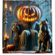 This shower curtain has a pumpkin king on it.