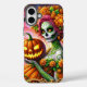 This phone case has a pumpkin lady on it.