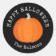 Pumpkin Orange and Black Happy Halloween Classic Round Sticker