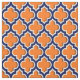 Custom Fabric: Navy Blue, White Moroccan Quatrefoil Trellis Pattern #5DS on a Pumpkin Orange Background